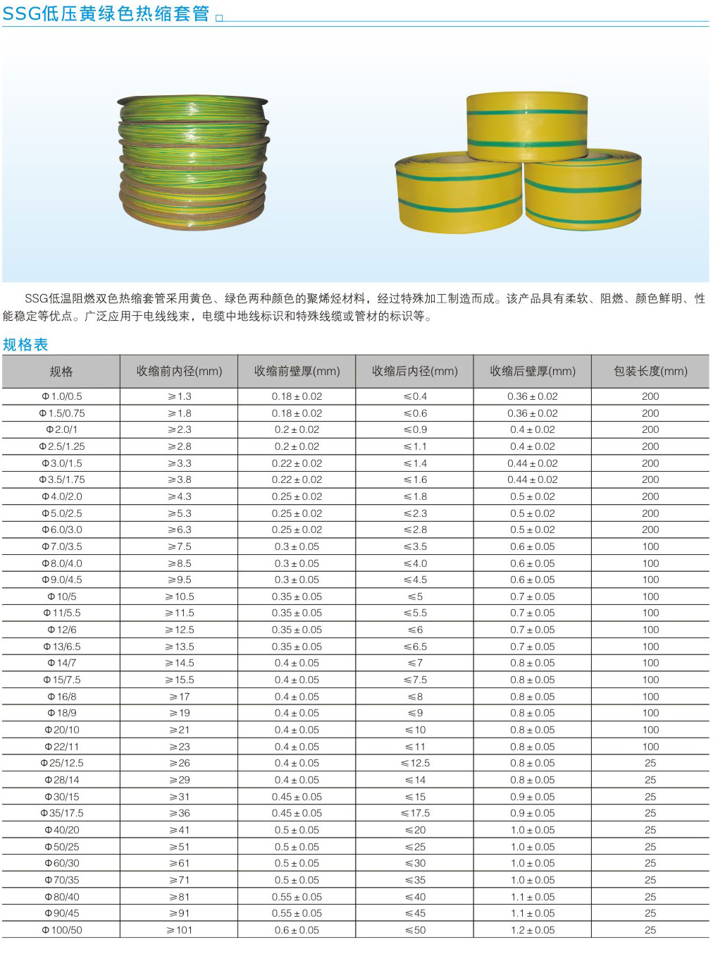 SSG低壓黃綠色熱縮套管